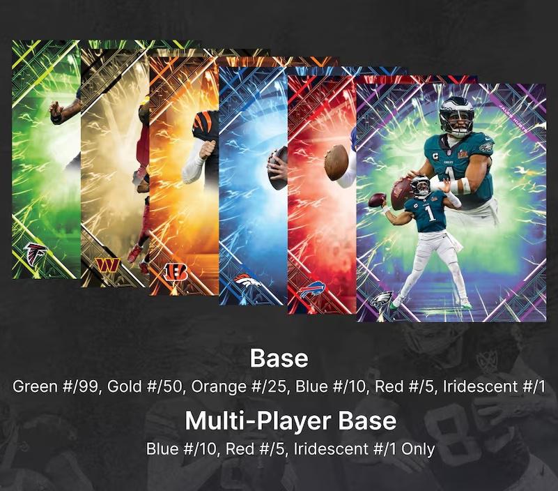 Colored Hologram Parallels: Limited editions marked with Green /99, Gold /50, Orange /25, Blue /10, Red /5, Black 1/1.